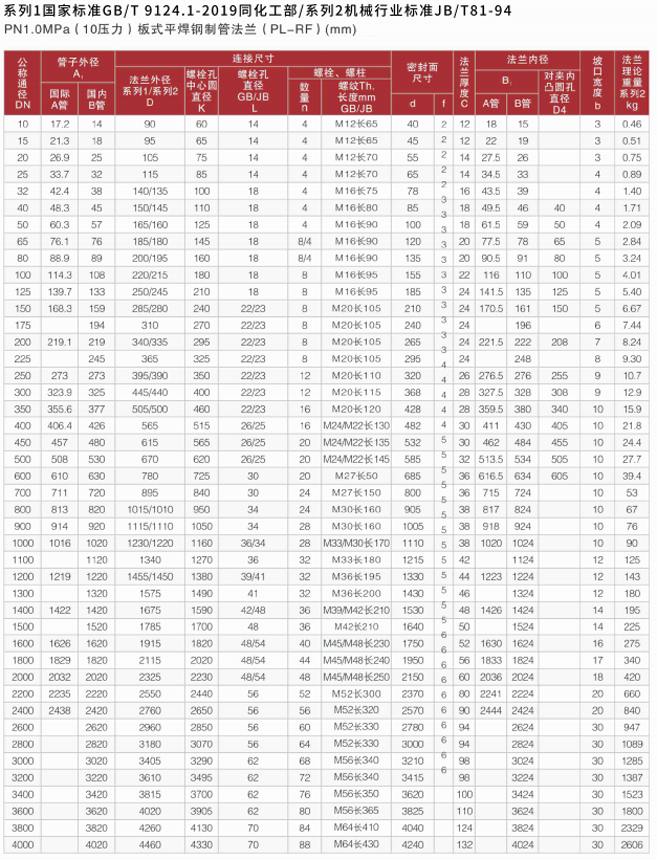 法兰标准表(10压力)